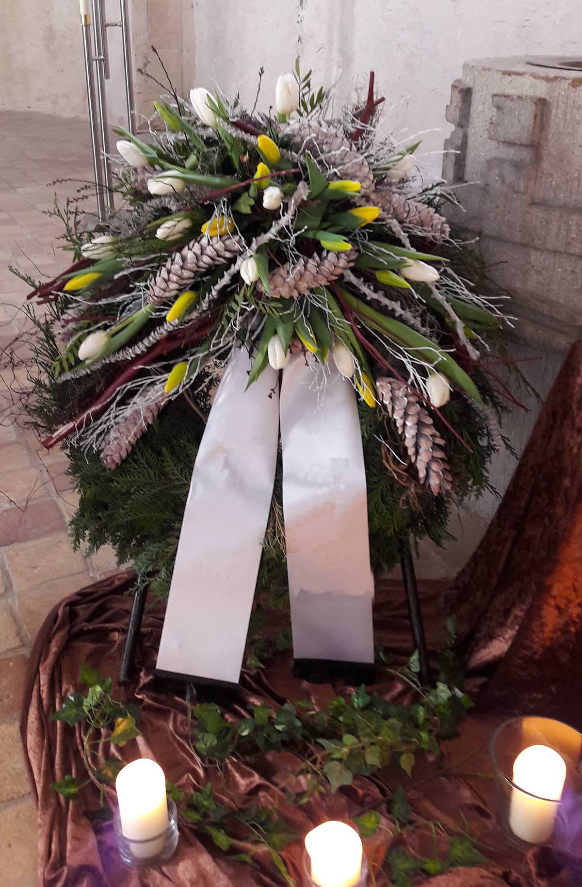 In unserer Galerie zur Trauerfloristik möchten wir Ihnen einige Anregungen geben, wie ein individuelles Arrangement aussehen könnte. Lassen Sie sich von uns beraten und den Bildergalerien inspirieren.